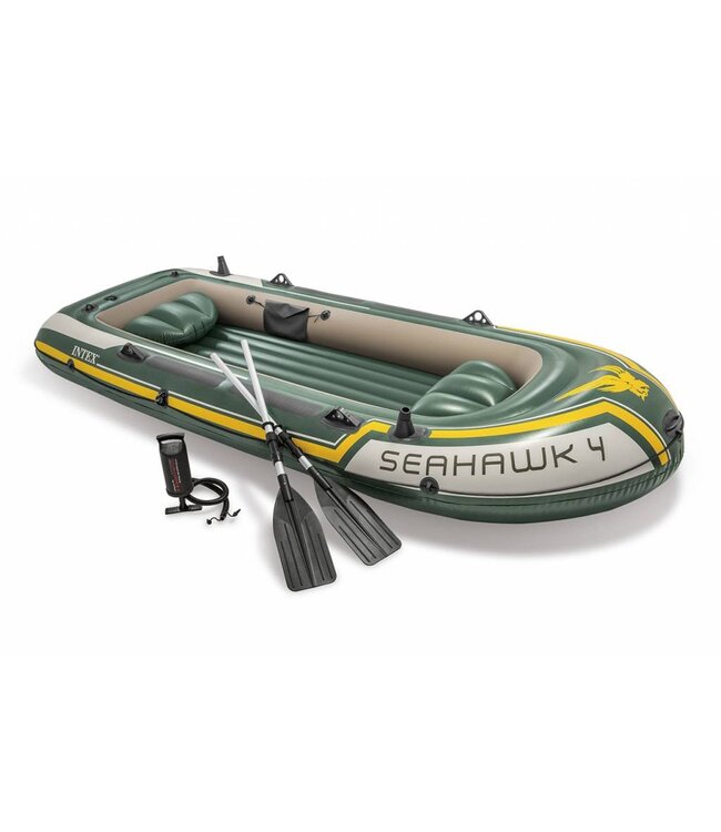 Deze Intex Seahawk 4 is een reus onder de opblaasboten. Door zijn lengte van 351 cm kunt u hier wel met 4 personen op varen. Daar komt zijn uitstekende prijs / kwaliteit verhouding nog bij wat de boot zeer gewild maakt. Door de scherpe prijs en groene kleur wordt deze opblaasboot ook vaak als visboot gebruikt. Omdat de boot voorzien is van 3 luchtkamers kunt u altijd veilig aan de kant komen ook als er 1 lek raakt. Op deze boot kunnen vier personen varen met een maximaal gezamenlijk gewicht van 400 kilo. Er kan tevens met behulp van een optionele motorsteun een (elektrische) buitenboordmotor achter de boot bevestigd worden. Ons advies is een motor met een vermogen max van 1,5 pk (niet meer dan 30 Lbs). Geschikt voor zoet en zout water. Een geweldige boot met veel ruimte voor veel plezier.