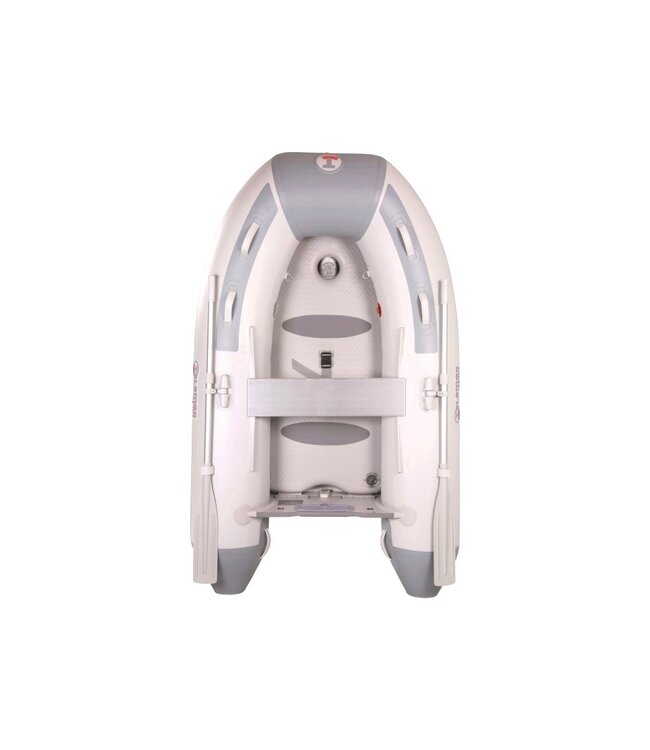 Een rubberboot met hogedrukvloer of airdeck, zoals de Talamex Highline X-Light HXL 230, is een opblaasbare boot waarbij de vloer bestaat uit een luchtkamer die opgeblazen wordt tot hoge druk. Dit zorgt voor een stevige en stabiele ondergrond om op te staan en te zitten tijdens het varen. De HXL 230 is gemaakt van hoogwaardig Valmex kwaliteitsdoek uit Duitsland en is licht in gewicht, wat handig is voor transport en opslag. Het heeft een overdruk ventiel en grote diameter tubes voor extra stabiliteit. Het maximale toepasbare motorvermogen is 3,5 pk en de boot heeft een draagkracht van maximaal 380 kg. De Talamex Highline X-Light HXL 230 is van zeer hoge kwaliteit en wordt geleverd met 3 jaar garantie en vele accessoires. Het is een uitstekende keuze voor wie op zoek is naar een betrouwbare en stabiele tenderboot.