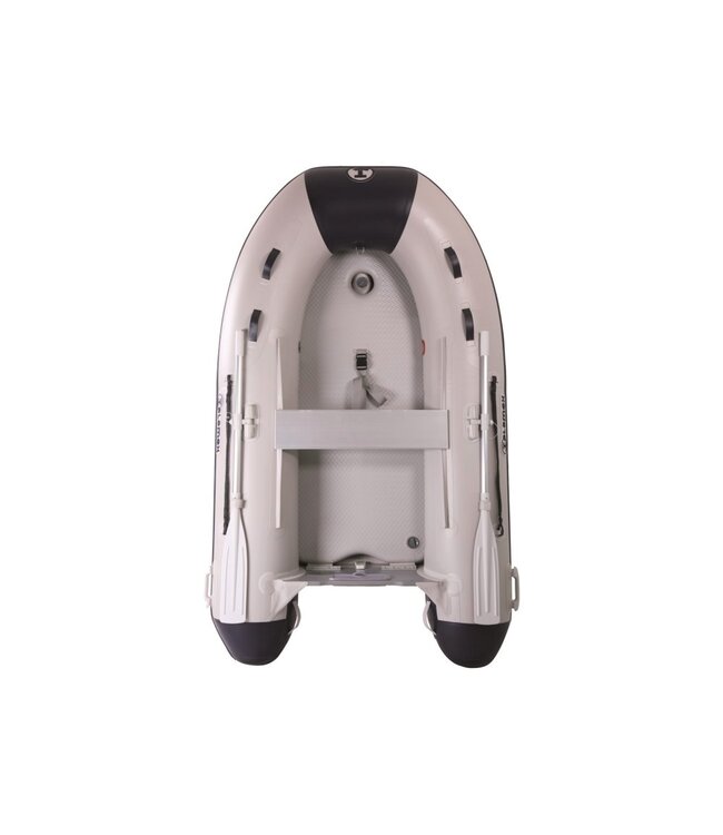 Een van de belangrijkste kenmerken van deze boot is de luchtvloer (het airdeck) met daaronder een opblaasbare kiel. Door het opblazen van de kiel ontstaat er aan de onderzijde een V bodem, dit komt de vaareigenschappen ten goede en ook het sturen is hierdoor een stuk makkelijker. Ook draagt de kiel bij aan de stabiliteit en veiligheid van de boot, vooral in golven of bij hogere snelheden. Dankzij het airdeck zit je heerlijk zacht en stabiel in de boot, en kun je met een gerust hart het water op. Het lichte gewicht van slechts 28 kg maakt hem gemakkelijk te dragen en in het water te laten. De luchtbodem is bovendien gemakkelijk op te rollen, waardoor de boot compact en eenvoudig op te bergen is in de paktas die er bij zit.
